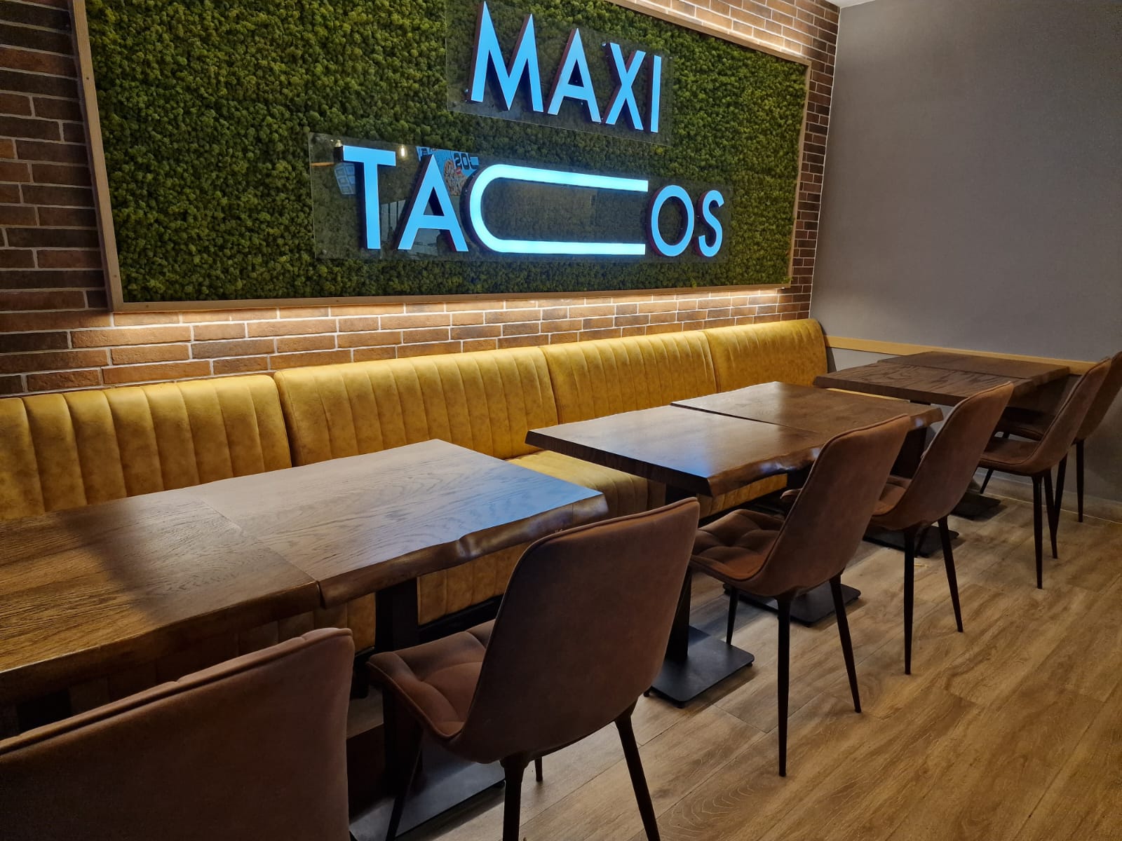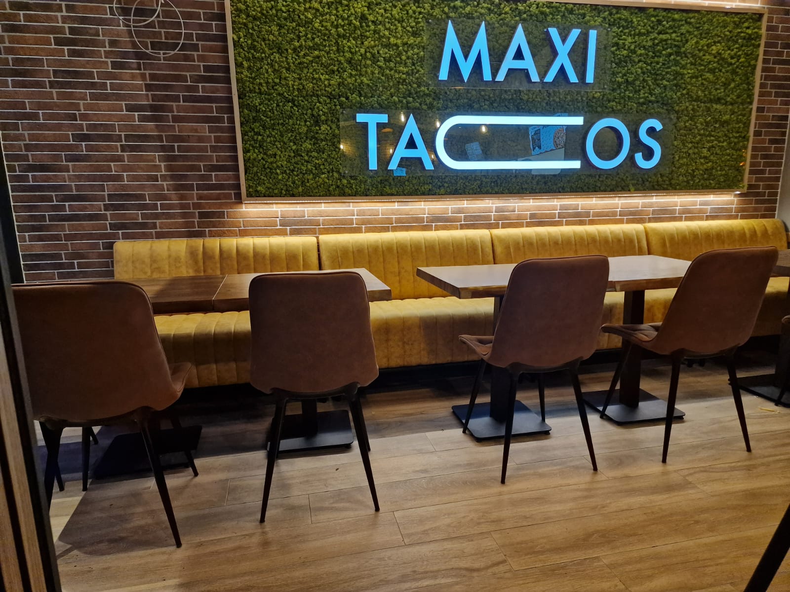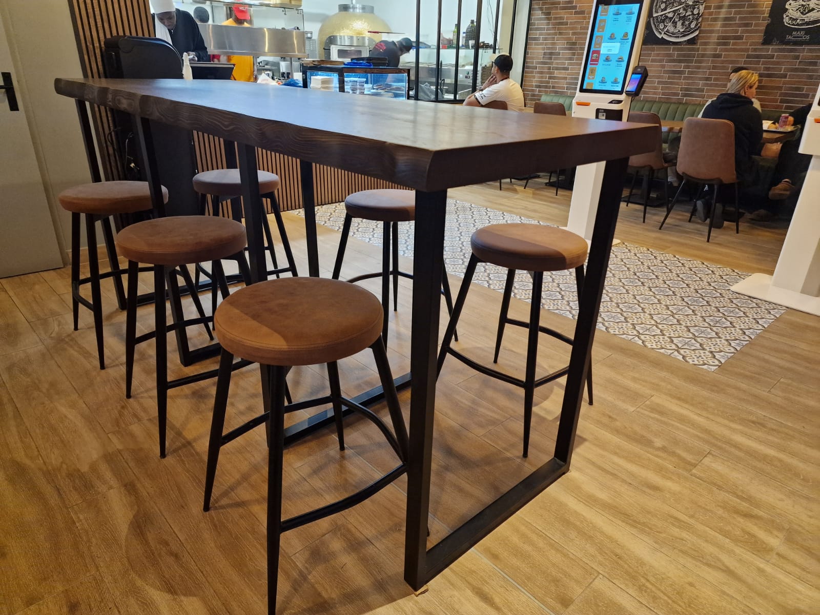 Mobilier d’intérieur : Chaise EVA, tabouret de bar HELA, banquette CHARLY sur-mesure, plateau de table TECHNOLOG et pied M316